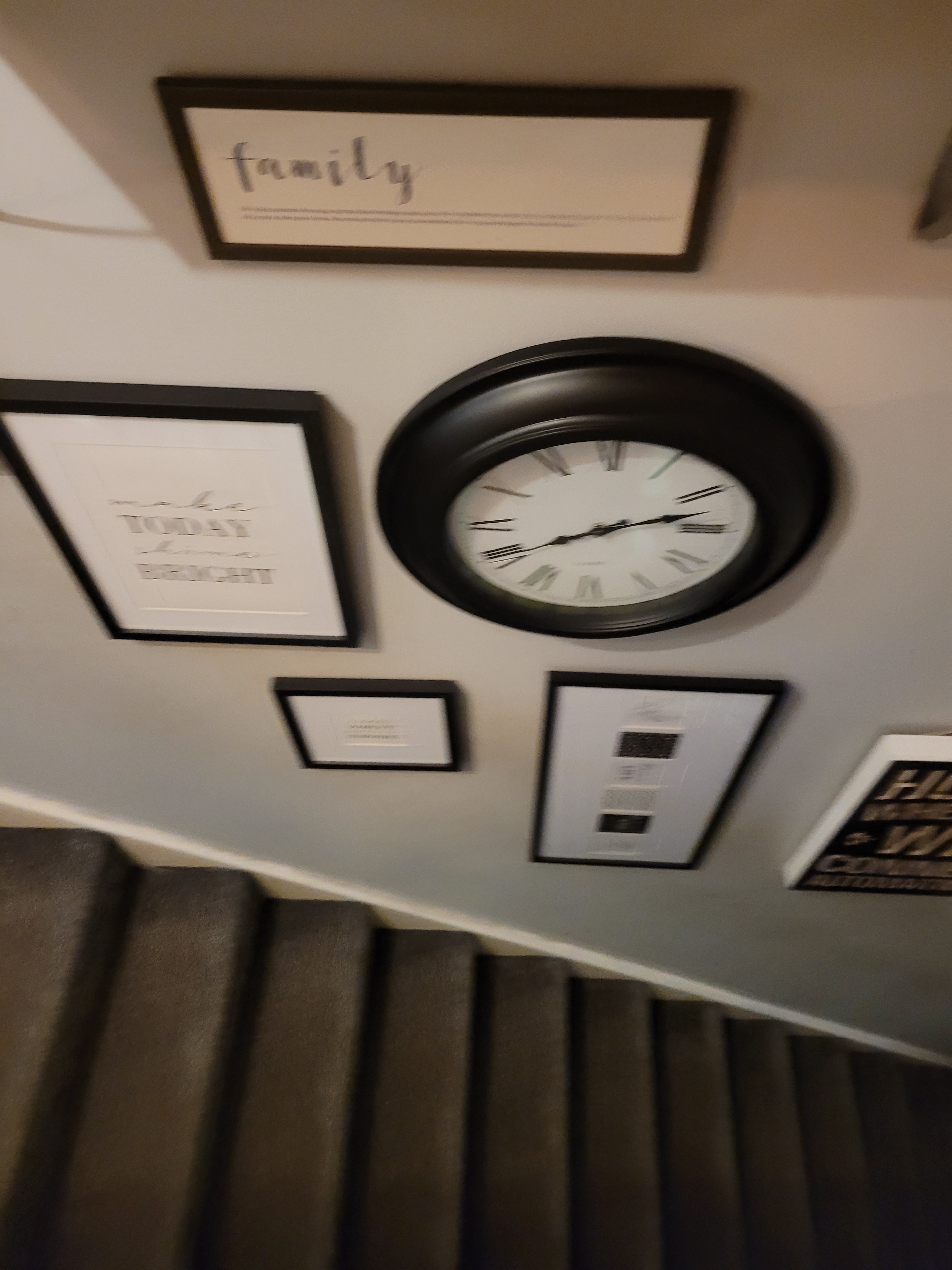 The second picture I took as I caught sight and our hall wall. We have just rearranged the picture frames there and put up a clock. I was struck by the arrangement when looking from above.
