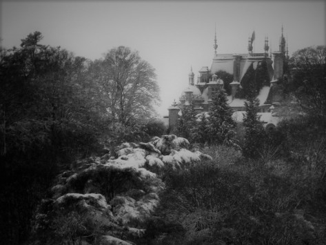 As she drunk she stared at the place in the distance. Turrets rising from the darkness like the beginning of some gothic horror movie.
