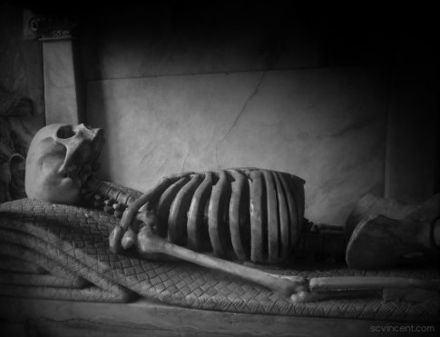 He nodded at the stone skeleton that adorned the tomb.